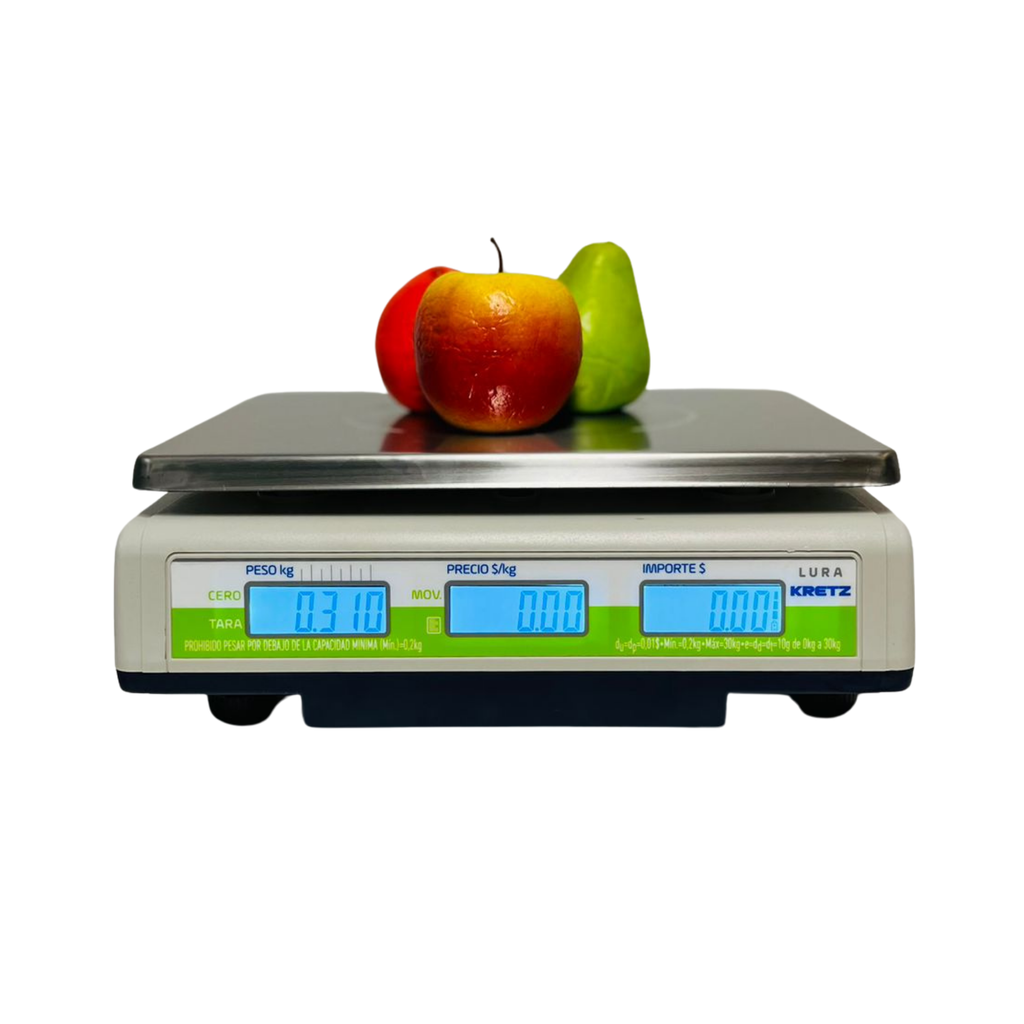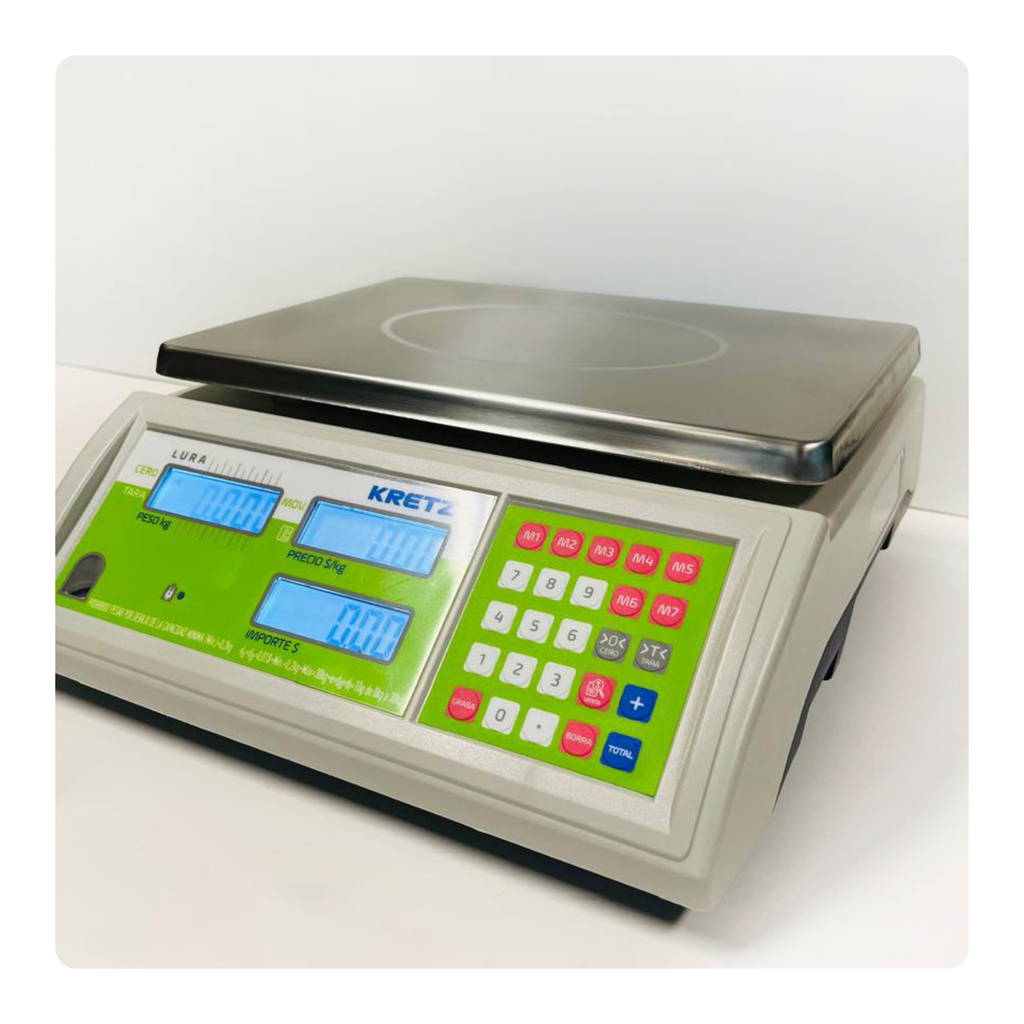 Con capacidad de 30 kg, display LCD de doble visor (operador y cliente) y teclado de fácil acceso, permite operar de forma ágil, clara y eficiente.