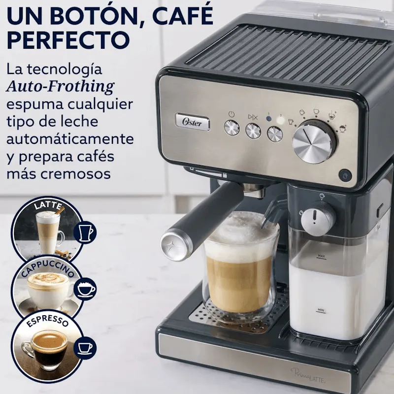 Si estás buscando una máquina confiable, potente y accesible, esta cafetera es ideal para vos. ¿Por qué no dar el salto a un mejor café en casa? ¿Qué te detiene de disfrutar tu bebida como te gusta? Aprovechá ahora y llevate la Oster EM6604SAR, con 15 bares, vaporizador y diseño práctico, ¡hacé clic y empezá a disfrutar!