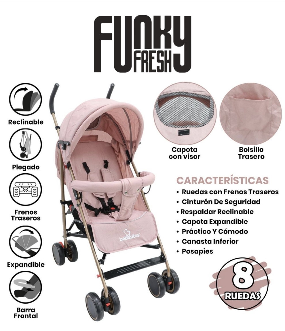 COCHE CUNA ULTRALIVIANO RECLINABLE ROSA ABKG-101RO