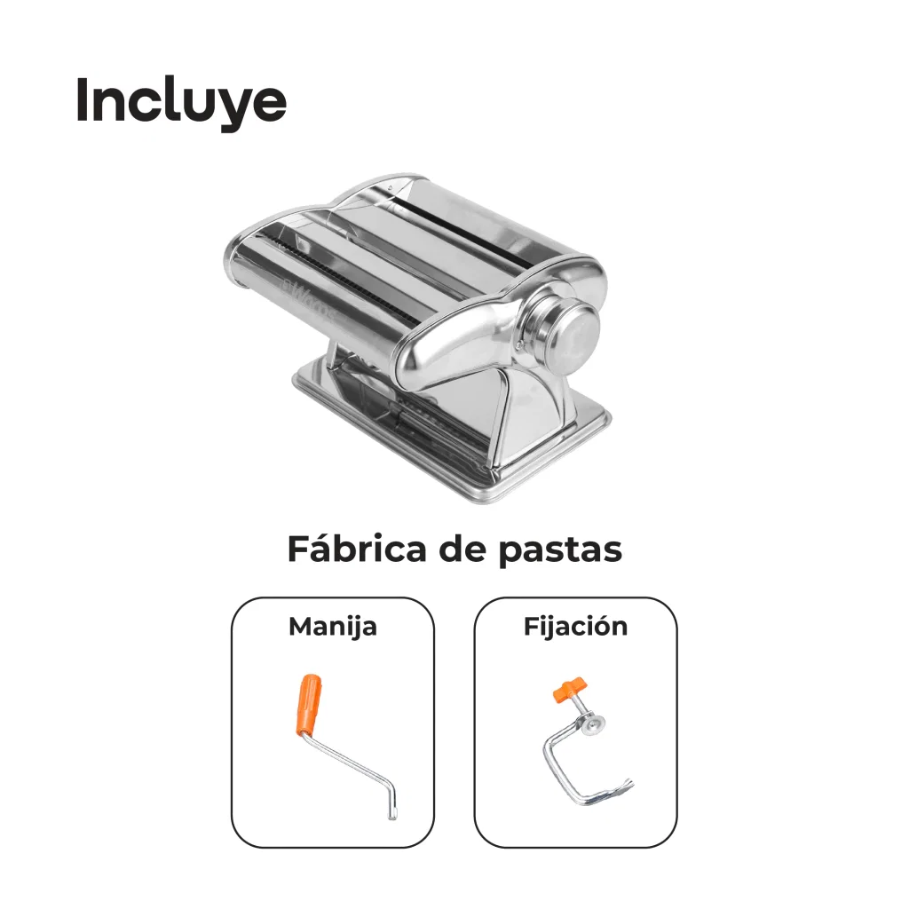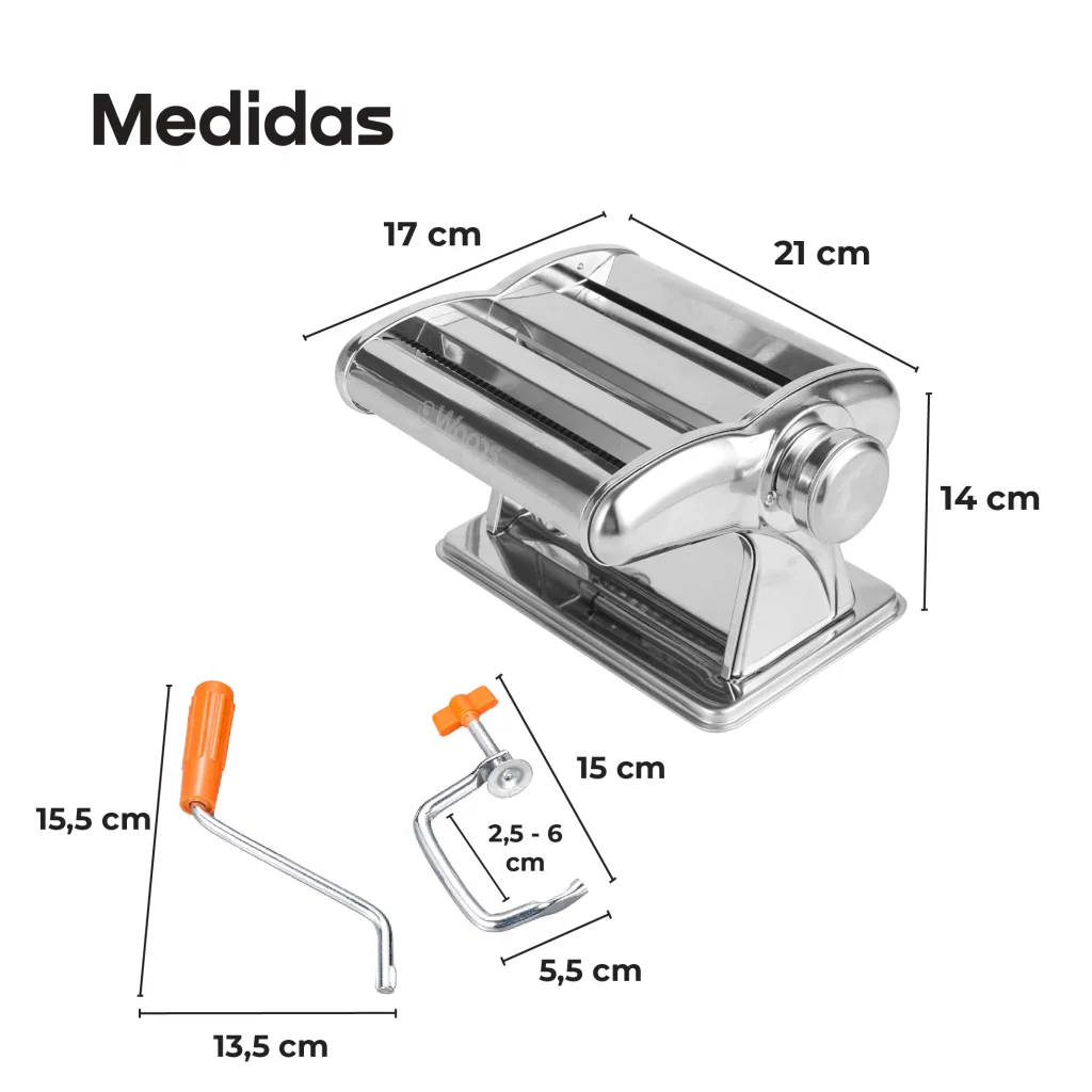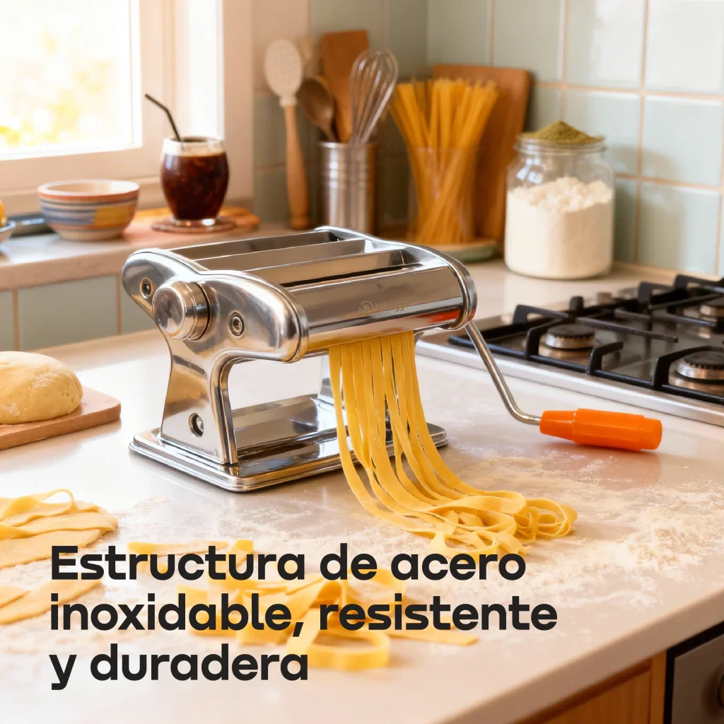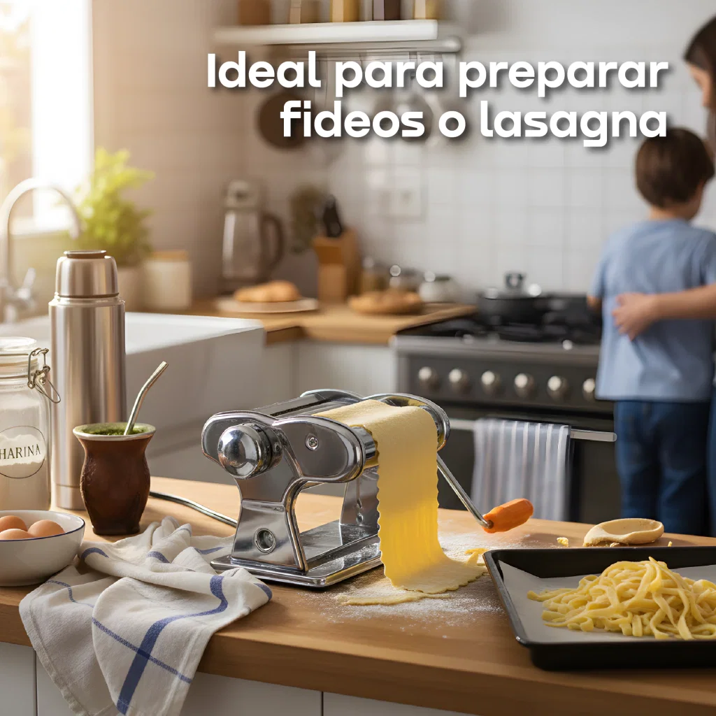 Ideal para quienes disfrutan de la cocina artesanal, permite amasar, estirar y cortar distintos tipos de pastas —desde fideos finos hasta láminas de lasaña o masa para ravioles— con precisión y sin esfuerzo.