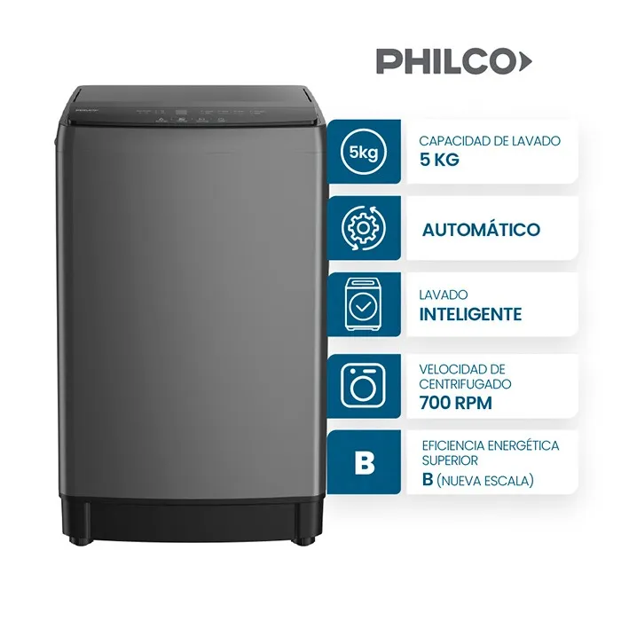 LAVARROPAS PHILCO C/SUPERIOR PHLS67GN 5 KG GRIS