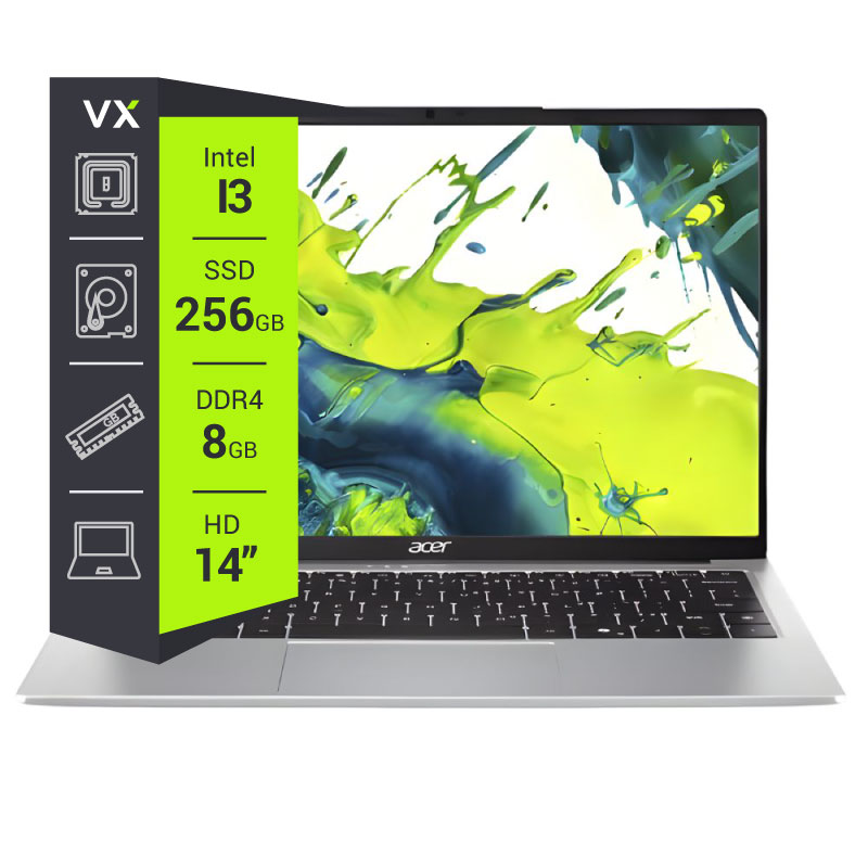 Notebook Acer Aspire Lite de 14" con pantalla IPS WUXGA 1920x1200, procesador Intel Core 3 N355 de hasta 3.90 GHz y 8 núcleos. Incluye 8 GB LPDDR5 y SSD NVMe de 256 GB para mayor velocidad. Diseño liviano con Wi-Fi, Bluetooth, USB, USB-C y HDMI. Ideal para estudio, trabajo y uso diario.