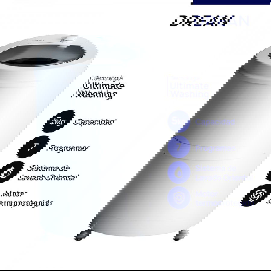 La tecnología Ultimate Washing cumple con altos estándares de calidad internacional. Los lavarropas Drean son testeados rigurosamente para garantizar su rendimiento óptimo. Su infusor de dos niveles asegura un lavado robusto y protege tus prendas.