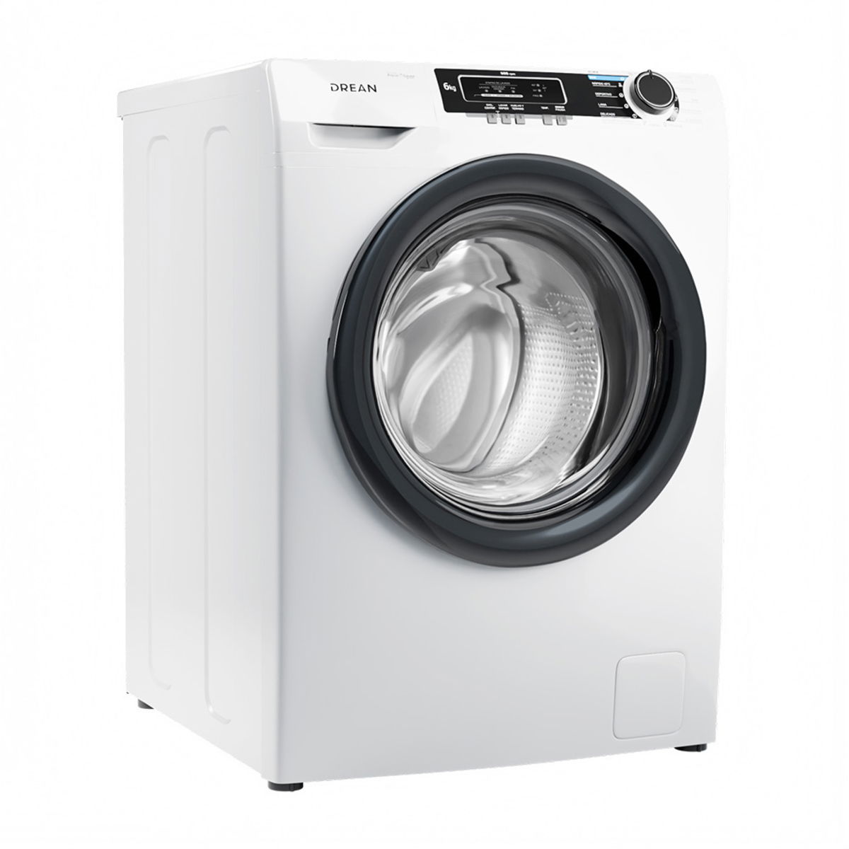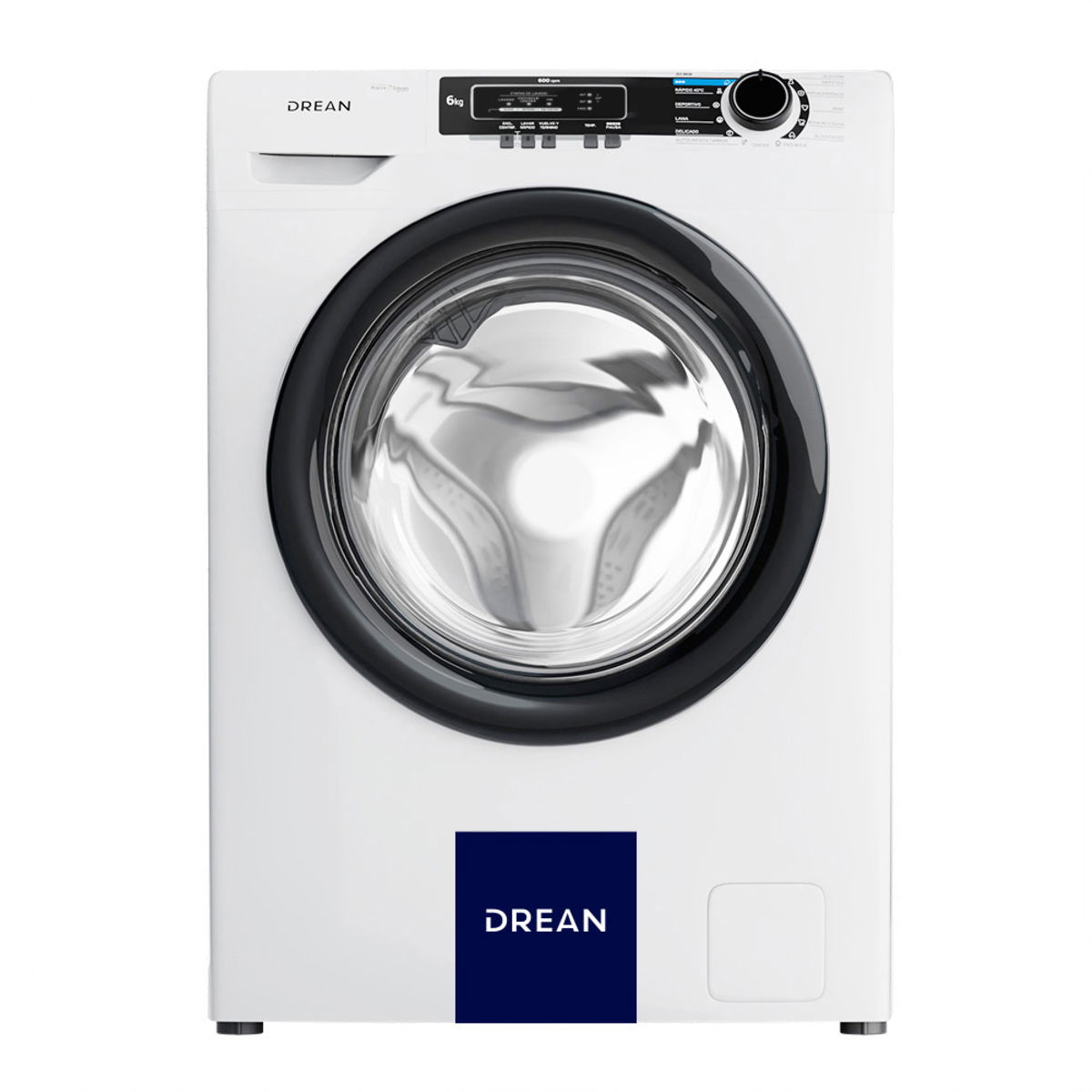 Lavarropas automático de carga frontal. Capacidad de 6 Kg. Color blanco. Velocidad de centrifugado de 600 RPM. Eficiencia A+. Sistema de lavado europeo. 15 programas. Panel con indicador led y perilla retroiluminada. Bloqueo para niños. Sistema Autobalance. Carga autoadaptativa. Lavado rápido 30’.