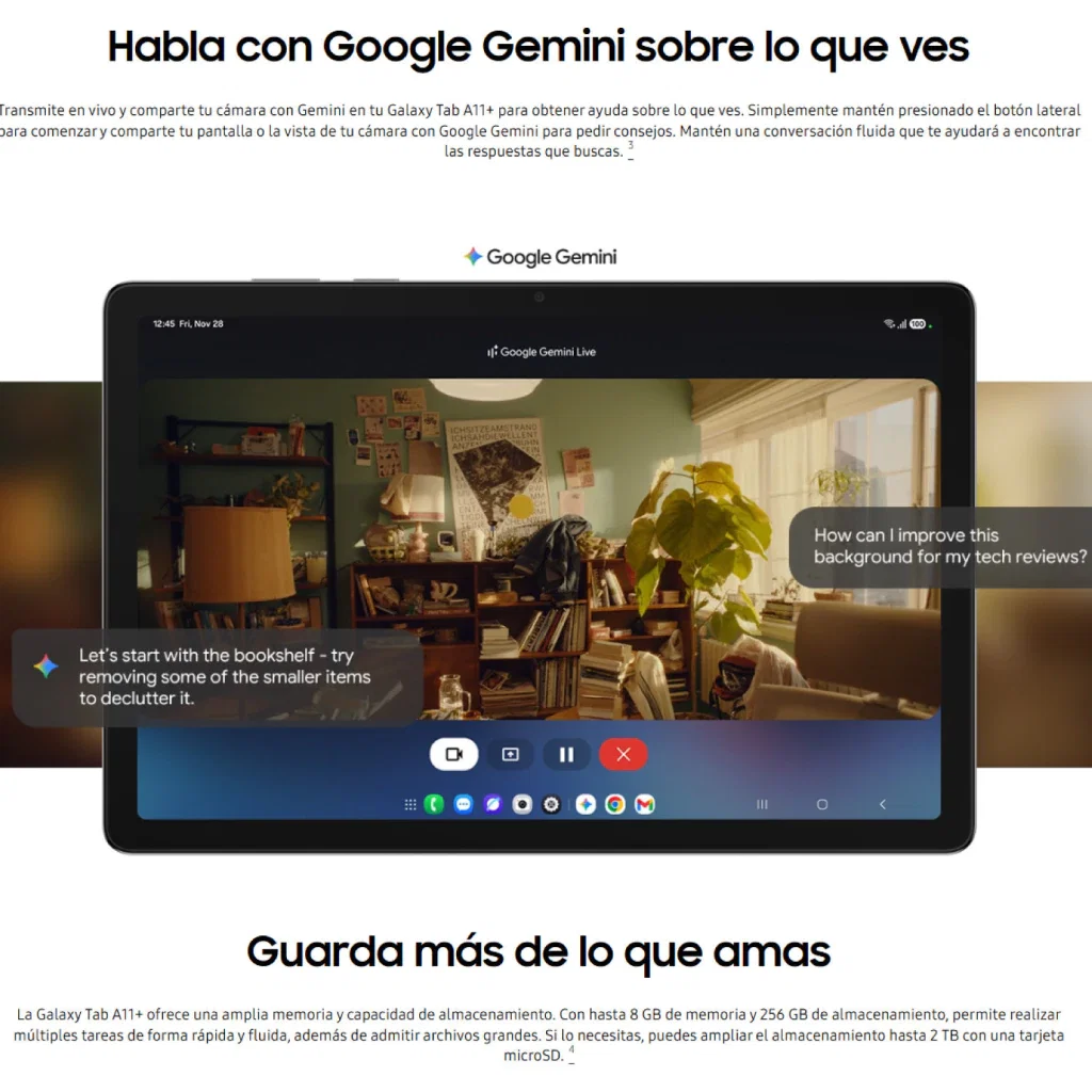 • Memoria expandible: microSD hasta 2 TB.