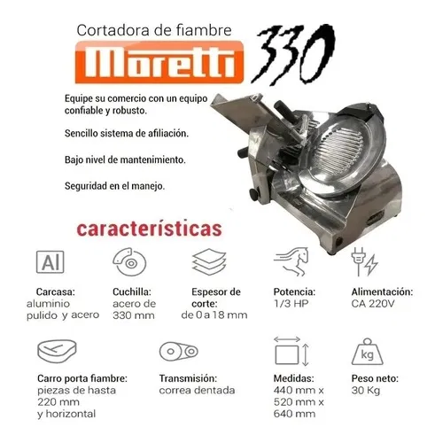 – Carro porta fiambre: 220 mm. Ancho x 190 mm. Alto