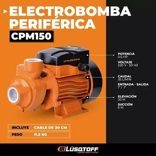 La bomba Lüsqtoff permite desplazar y bombear grandes caudales de agua limpia y potable. No dudes en revisar sus características, ya que esta podría ser una excelente opción.