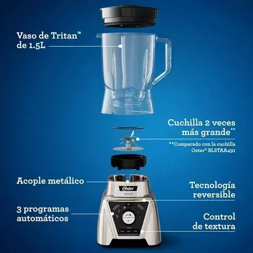 Una vida más sana te espera con la nueva y súper versátil licuadora de alto rendimiento Oster® Xpert Series®. Su motor con 2 veces más potencia* y tecnología reversible para licuar tus alimentos y preparar deliciosas y saludables recetas en segundos.
