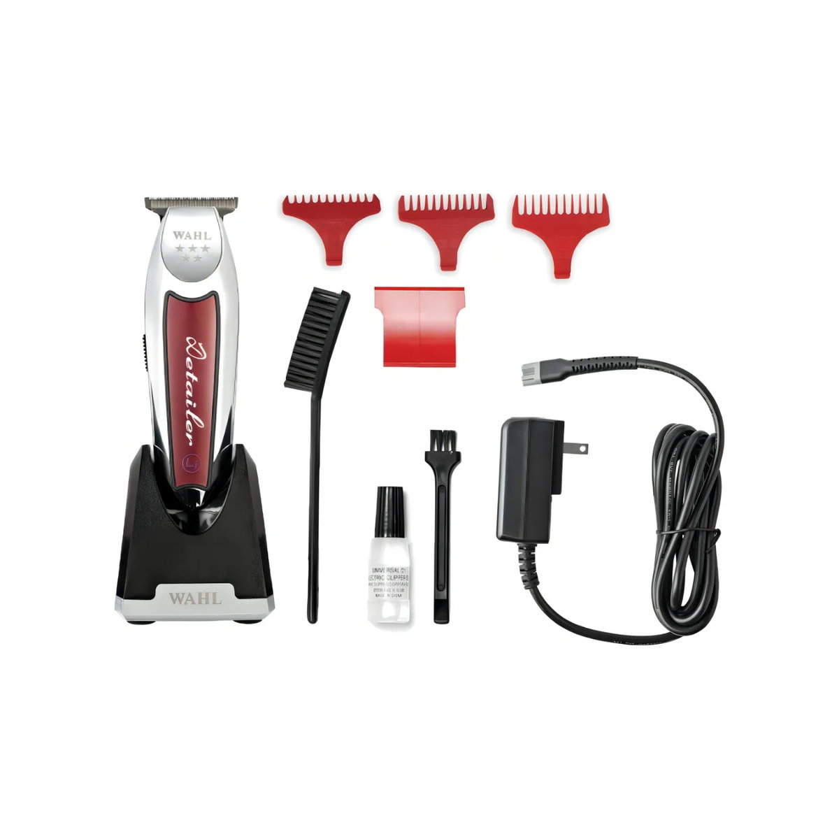 Consigue un corte de pelo y barba perfecto con la Recortadora Wahl Professional 5 Star Detailer 8081 en elegante color bordó y plateado. Esta máquina de cortar pelo cuenta con un potente motor rotativo y cuchillas de acero quirúrgico que garantizan un corte preciso y uniforme en todo momento. Su diseño compacto y silencioso la hace ideal para llevarla contigo en tus viajes y mantener tu estilo impecable en cualquier lugar. La Wahl Detailer incluye 3 peines para adaptarse a tus necesidades y un cabezal plano que facilita el acceso a áreas difíciles. Aunque no es inalámbrica, su alimentación por corriente eléctrica asegura un rendimiento constante y sin interrupciones. Además, viene con accesorios como aceite lubricante, cepillo limpiador, manual y protector de cuchillas para mantener tu recortadora en óptimas condiciones. Dale a tu look el toque profesional que merece con la Recortadora Wahl Professional 5 Star Detailer 8081.