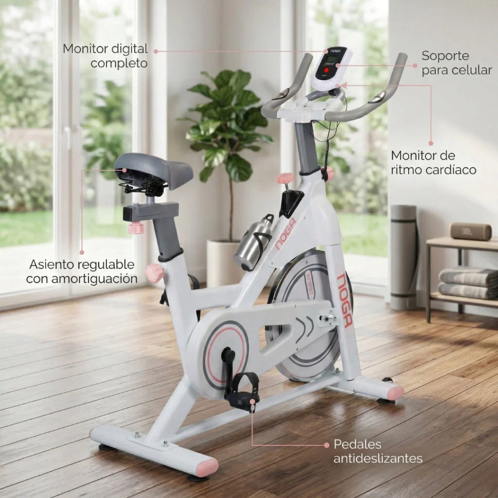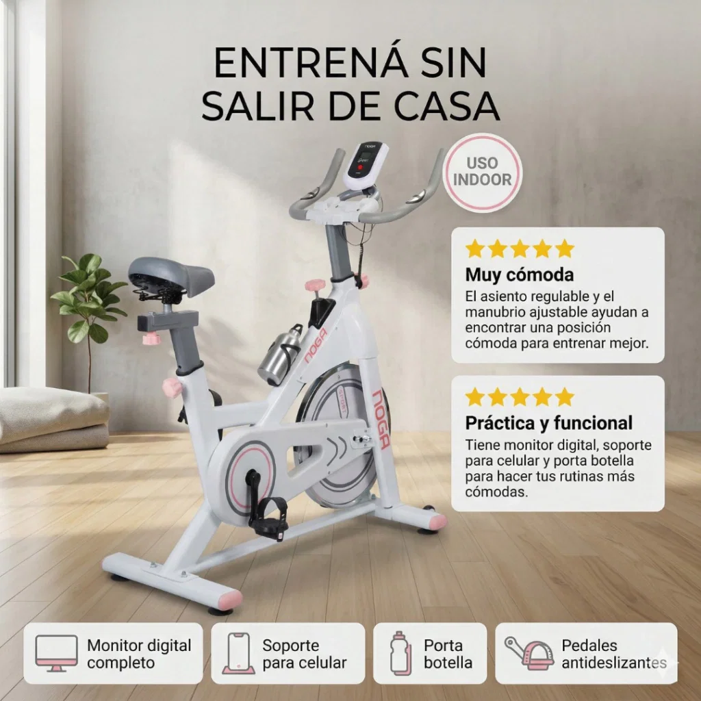 La Bicicleta Fija Indoor CL-500 de Noga es perfecta para realizar ejercicios físicos sin necesidad de salir de casa o del gimnasio. Es una de las herramientas más efectivas para mejorar la condición física general y quemar calorías. Te ayudará a fortalecer piernas y glúteos, abdomen, espalda baja, brazos y hombros. También podrás liberar endorfinas, que reducen el estrés, la ansiedad y mejoran el estado de ánimo. Poné en práctica un plan de entrenamiento según tu objetivo (bajar de peso, tonificar, mejorar resistencia, etc.). Con CL-500 podés entrenar en cualquier momento del día, sin preocuparte por el clima o el tráfico.