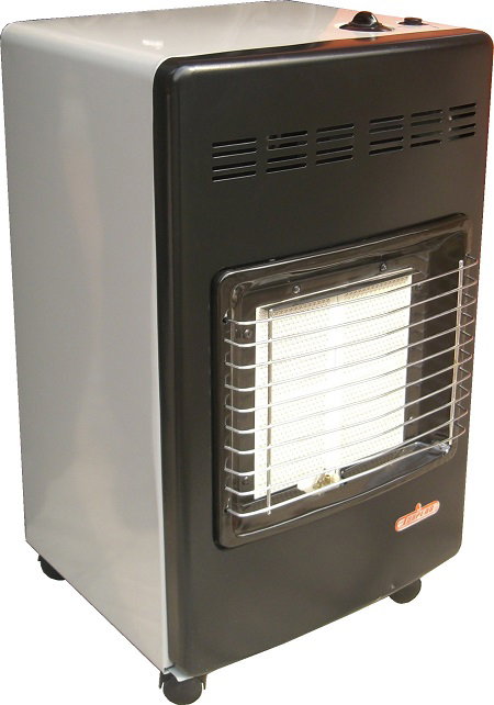 Estufa garrafera infrarroja de 1900/3800c/h, enciende una o ambas camaras, con valvula de seguridad, encendido piezoelectrico, analizador atmosferico, regulador de gas, cuatro ruedas giratorias. Para gas envasado. Medidas: 40cm de ancho, 69cm de alto y 36cm de profundidad."
