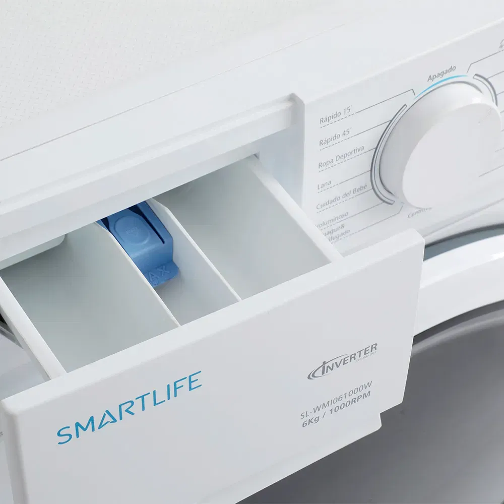 Con 1000 RPM, ofrece lavados profundos y centrifugado rápido, reduciendo el tiempo de secado de la ropa. Smartlife te brinda un equipo compacto y de bajo consumo,