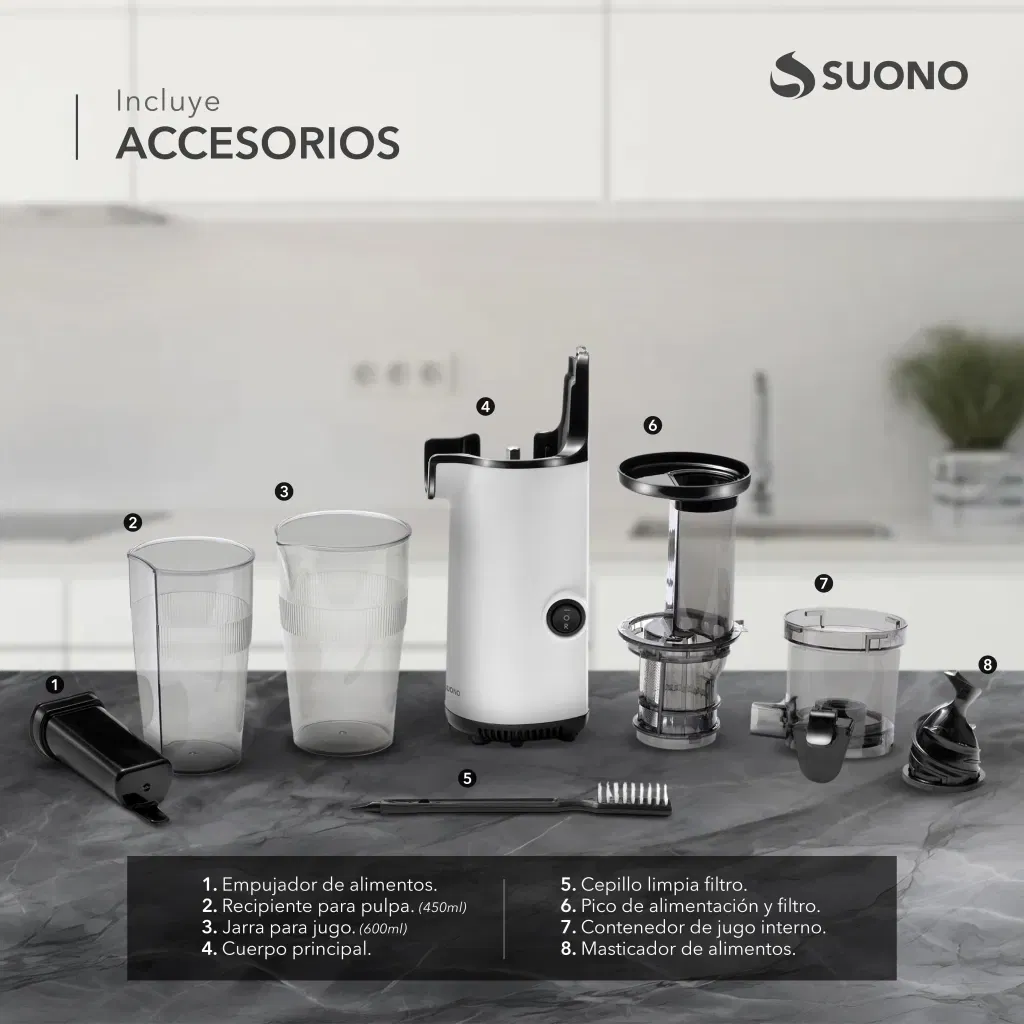 Mini Juguera Eléctrica Suono 600ml con Extracción Lenta 100W: Más nutrientes en cada jugo