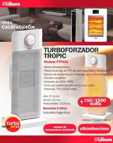 Si buscás un calefactor compacto, eficiente y silencioso, el Calefactor Torre con Forzador Tropic - Modelo FTP530 es tu mejor opción. ¡Disfrutá del calor en espacios pequeños y medianos con un producto de calidad argentina!