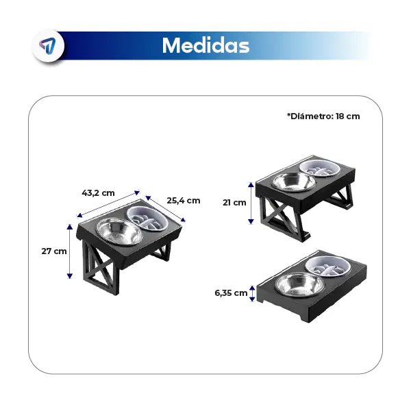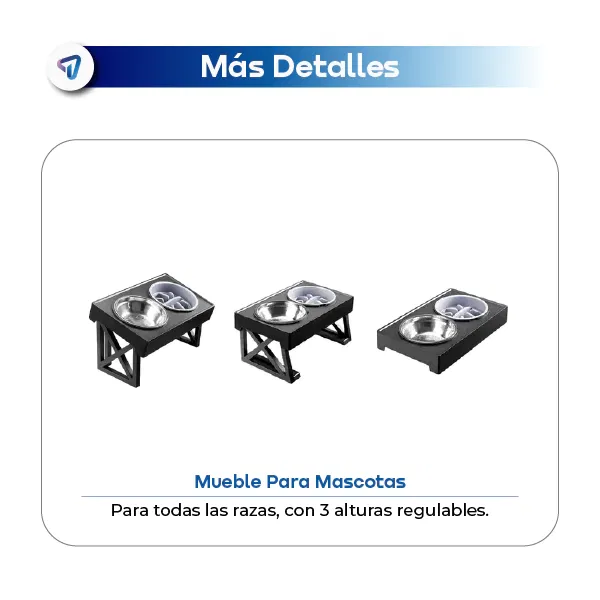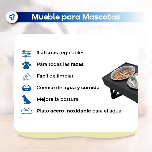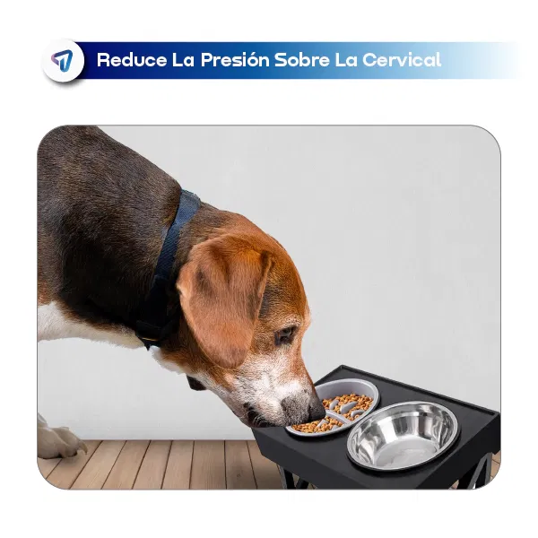 Su diseño ergonómico con altura regulable en tres niveles permite que tu perro coma y beba con comodidad, evitando tensión en cuello y columna.