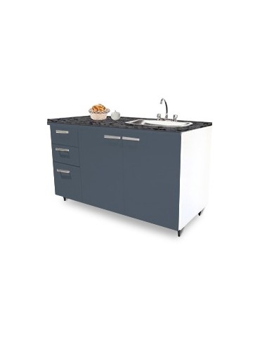 Práctico, moderno y funcional, este mueble bajo mesada construido en Melamina, es indispensable para organizar tu cocina. Su material permite un fácil mantenimiento. Cuenta con 3 cajones con correderas metálicas y 2 puertas espaciosas para almacenar todos tus elementos de cocina. Esta línea de muebles viene desarmada, preparada para ensamblar de manera rápida y simple. Dentro de cada caja podrás encontrar las correspondientes instrucciones y los componentes necesarios para su correcto armado. Disponible en color blanco o en las combinaciones de blanco con puertas y cajones tabaco o blanco con puertas y cajones gris grafito. Combinable con otros muebles de cocina Platinum.