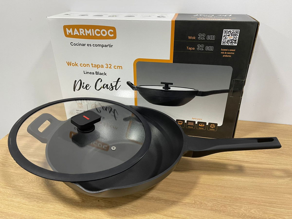 Sarten con tapa 28 de aluminio de alta densidad. Apto todo tipo de cocinas (gas, inducción, eléctricas, cerámico). Tapa de vidrio plana con aro de silicona y salida de vapor. Asa de bakelita con recubrimiento soft touch.
