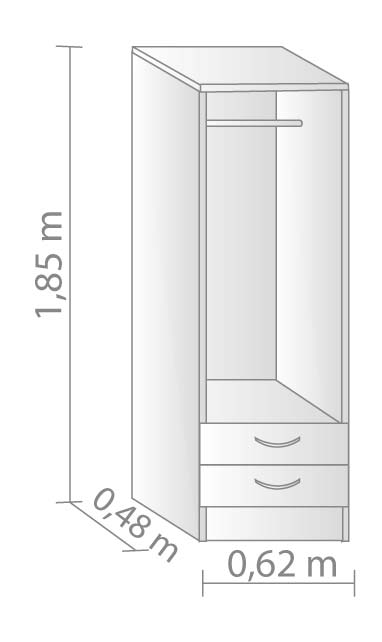 Este práctico placard está diseñado para organizar tu ropa ya sea para colgar como para doblar, sin ocupar un espacio significativo dentro de tu ambiente. Consta de 2 cajones con correderas metálicas y 1 un barral y 1 estante interno sobre cajones. Su sistema de embalaje y armado en kit te permite transportarlo sin dificultades hasta su lugar de armado. Luego, podés desarmarlo para trasladarlo y armarlo nuevamente. Además es un producto modular que podés combinarlo con otros placares Platinum, manteniendo la línea y ocupando todo el espacio que desees. Disponible en colores blanco, gris andino, cedro y tabaco. También combinable con otros productos de dormitorio (chifonier, cajoneras, mesas de luz, cabezal, etc